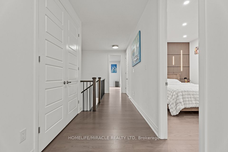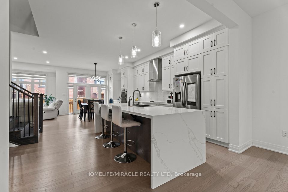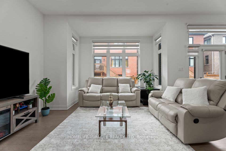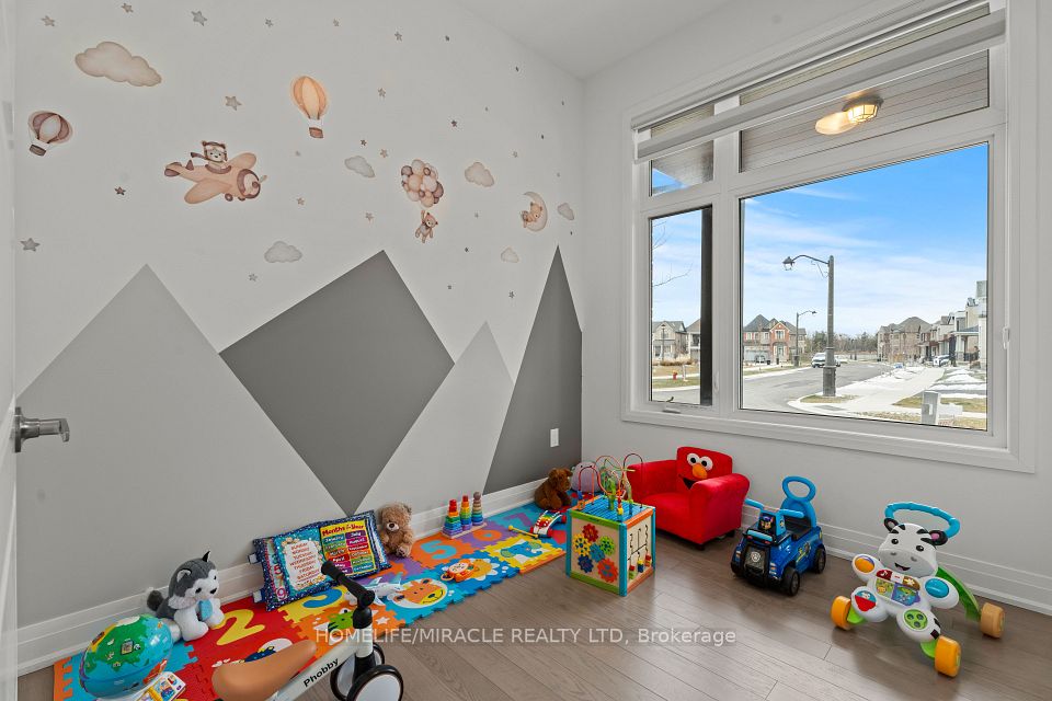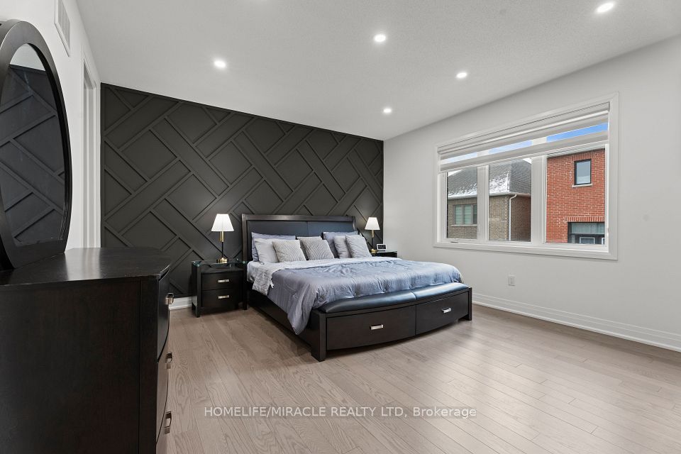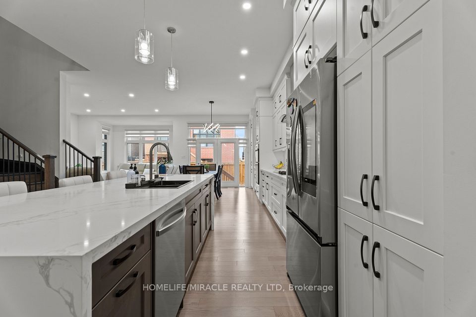 Stunning 2024 Mattamy home in prestigious Preserve West. North-east facing, sun-filled 4+1 bedroom, 3.5 bathroom home with $100K+ in upgrades, situated on a 34.12 ft frontage lot, fully fenced and backed by the Tarion Warranty. Features 10' ceilings on the main floor, 9' ceilings on the second, wide-plank hardwood, imported porcelain tiles, and a grand upgraded chef's kitchen with dual-tone cabinetry, quartz waterfall countertops, and matching backsplash. Includes triple-glazed windows, electric fireplace, main-floor den, and a luxury primary ensuite with freestanding tub and frameless glass shower. Smart home package, ENERGY STAR certification, 200-amp panel, pot lights, and French frosted glass doors. Basement permit applied for a 2-bedroom second unit plus owner 1-bedroom with full bath. New fence (May 2025). Conveniently located near parks, top schools, shopping, GO Station, Hwy 407 & QEW/403.Overnight parking permit available.