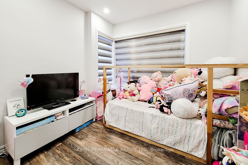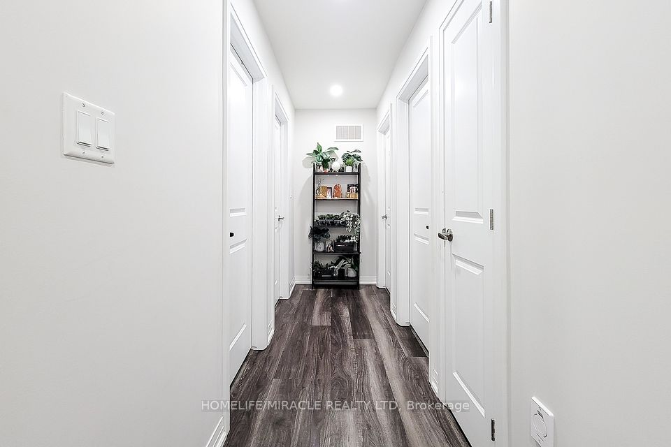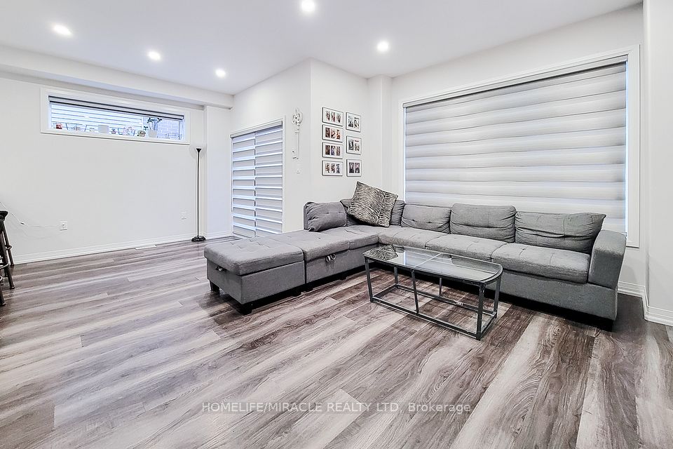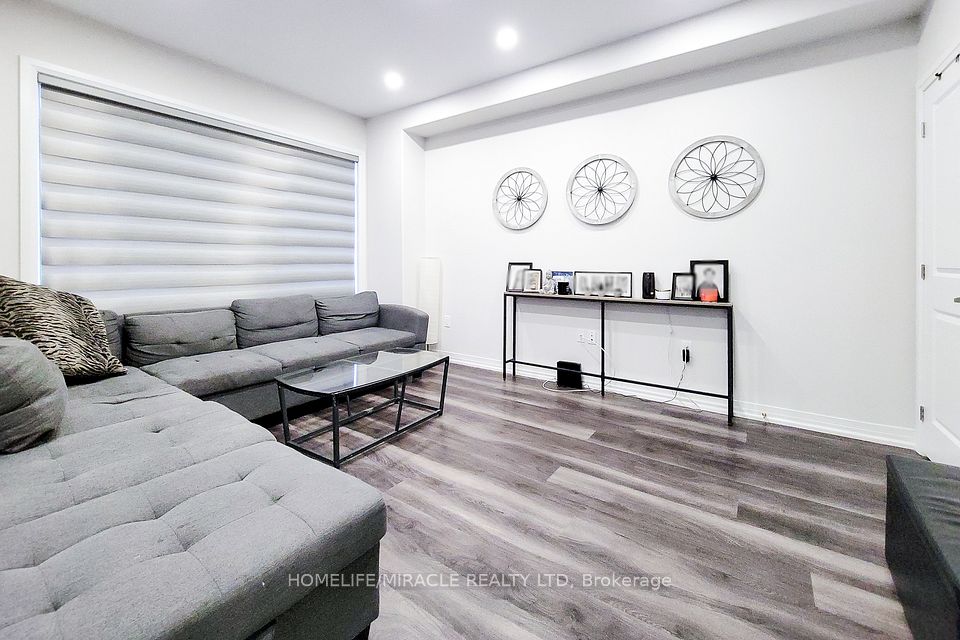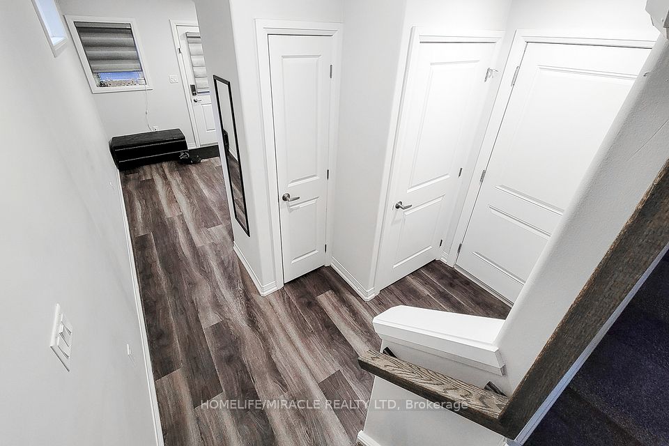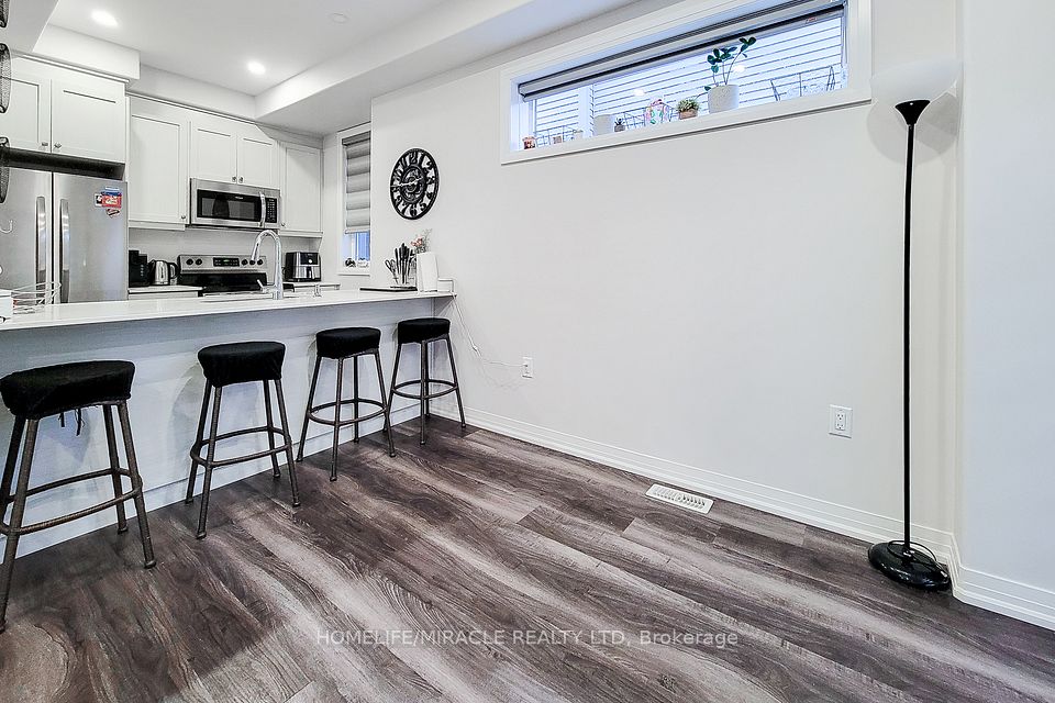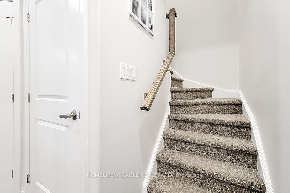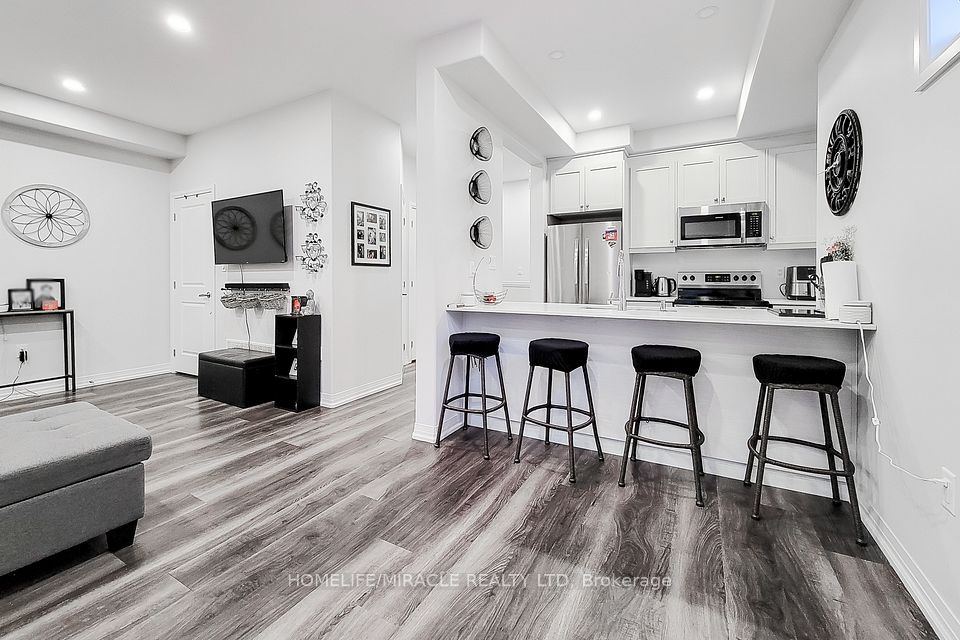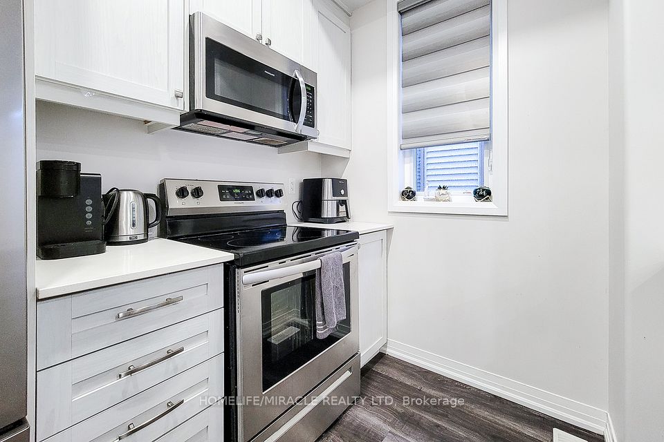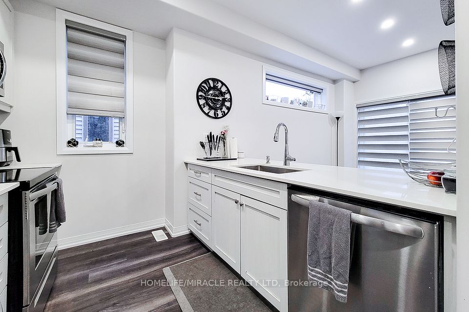 This stylish end-unit, 3-storey townhome offers over 1,400 sq. ft. of thoughtfully designed living space, featuring 3 bedrooms and 2 bathrooms. The ground level includes a versatile foyer ideal for a home office and an attached garage with interior access. The main level impresses with a contemporary kitchen featuring stainless steel appliances, quartz countertops, and a generous island, along with a breakfast area and balcony access. The sun-filled family room, powder room, and convenient stacked laundry complete the space. The upper level hosts three well-appointed bedrooms and a full bathroom. Fully finished on all levels with no basement or backyard, this home is ideally situated near major highways, the lake, shopping, schools, and parks.