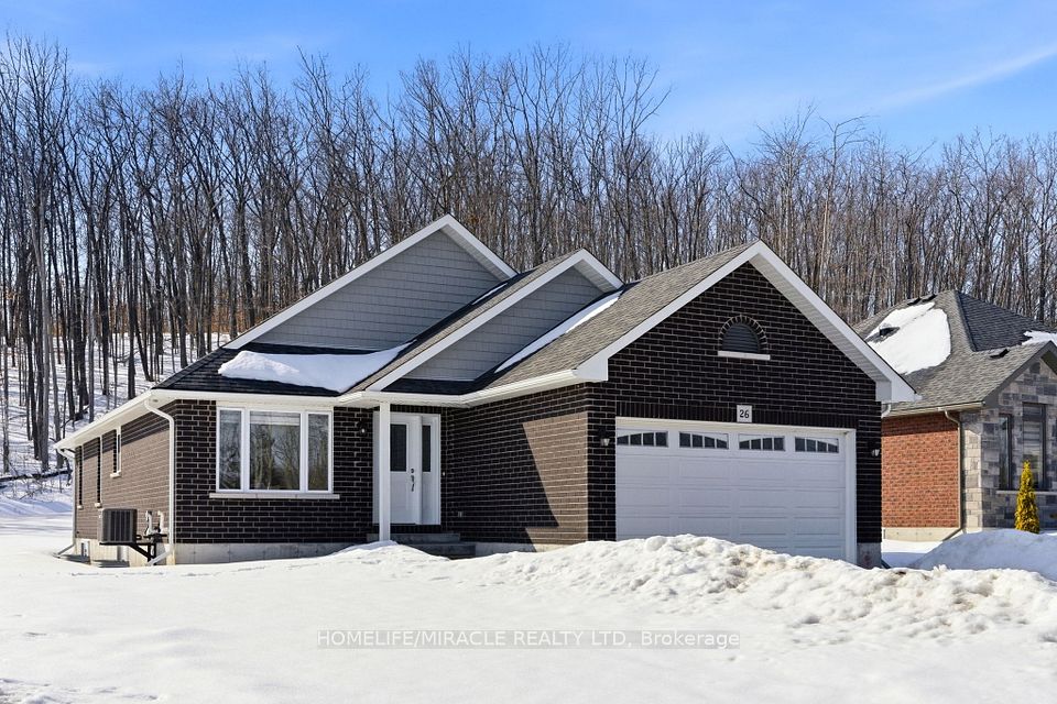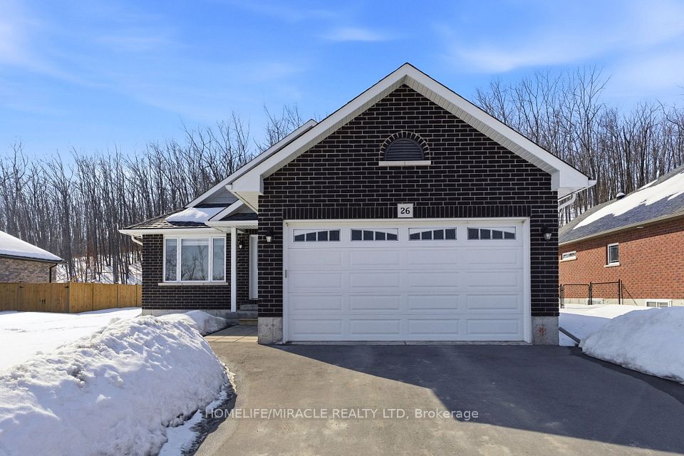 Tired of the grind and hectic lifestyle in the GTA? Welcome to Haven on the Trent, where modern luxury meets the serene beauty of nature. Nestled on an impressive 70x250 foot lot, this premium McDonald-built bungalow offers unparalleled privacy with a deep, wooded backyard and immediate access to the scenic shores of the Trent River. Apx. 3,000 sq ft. of finished living space with a functional modern, open-concept layout. The home features a chef's kitchen with a centre island, sleek quartz countertops, classic white cabinetry accented by sophisticated gold hardware. The primary bedroom serves as a true retreat, offering a spa-like ensuite, a walk-in closet and breathtaking views of the treed backyard. Additional good sized bedroom on the main floor and another full washroom. Mudroom/laundry on the main floor as well. Double car garage with interior access. The basement is completely finished featuring a massive recreational space, 2 bedrooms and a full bathroom. On municipal water and featuring high speed internet gives you city convenience/luxuries! Located just steps from the Trent River and the nature trails of Seymour Conservation Area, you are also within walking distance of the brand-new Sunny Life Recreation & Wellness Centre. Enjoy the local charm of downtown Campbellford, home to the famous Dooher's Bakery and the Aron Theatre, all while staying conveniently close to the hospital and essential services. Whether you are commuting via Hwy 401 or looking for a scenic escape an hour from the GTA, this gorgeous property offers the perfect blend of peaceful charm and sophisticated convenience. Come see why 26 Riverside Trail offers unparalleled value and is the premier choice in Trent Hills!