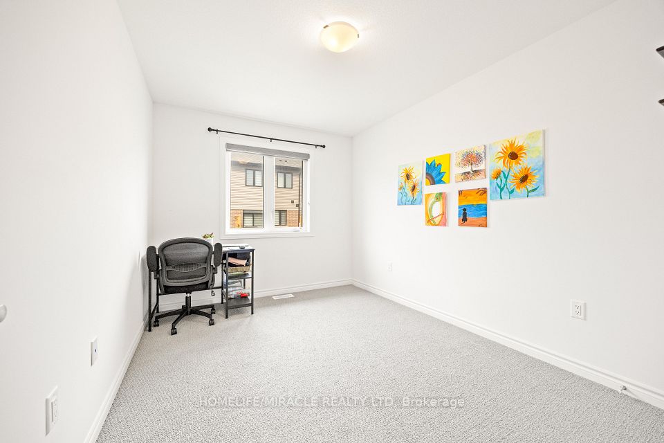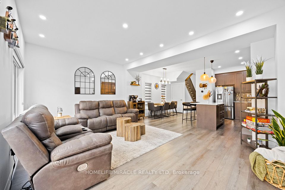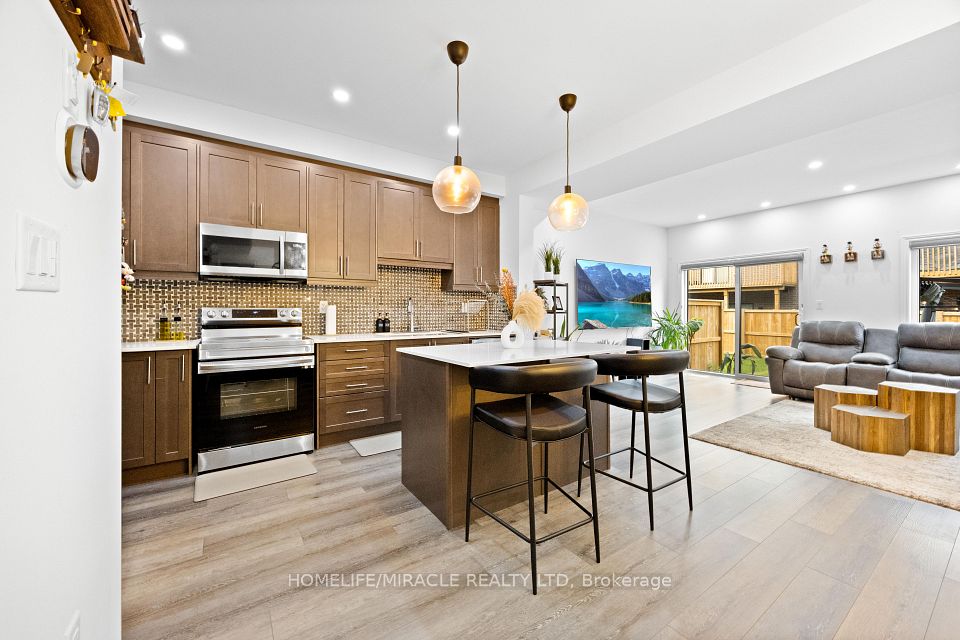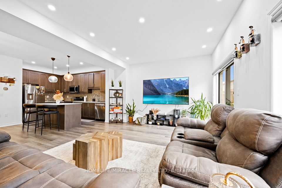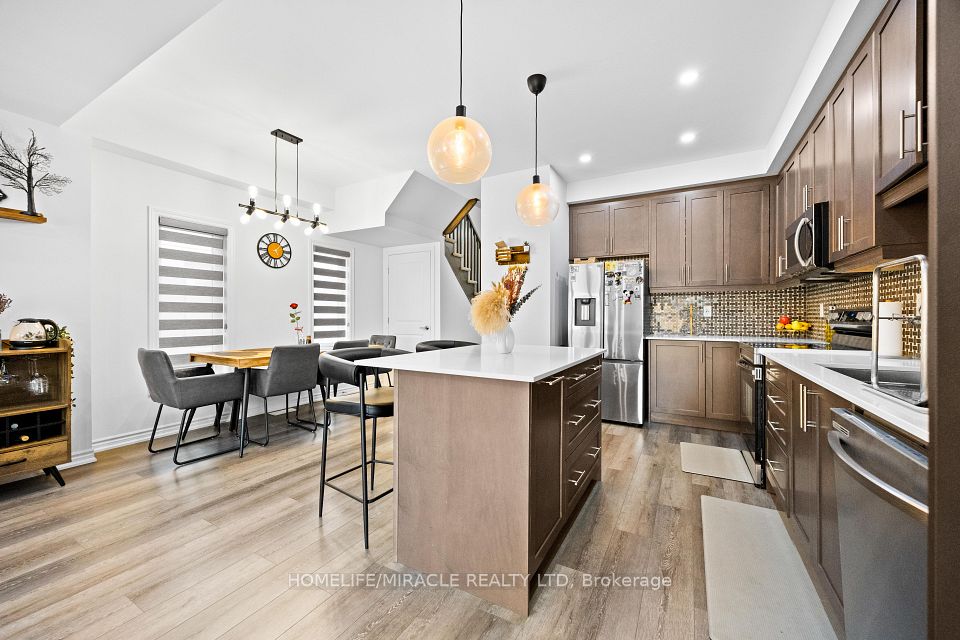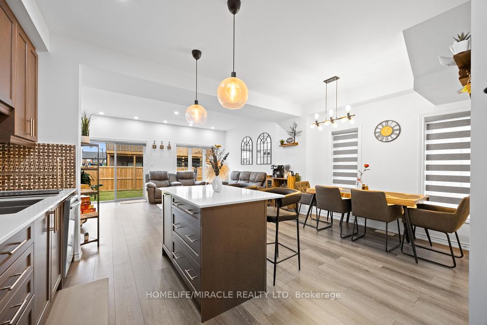 -Main Awesome End-unit Freehold Townhouse (feels like semi detached), Move In Ready! Corner Enhanced End Unit 1709 Sq Feet 2 Storey Freehold Townhouse Just Like Semi, In Sought Area Of brant West! 3 Bedrooms, 2.5Baths.Bright/Spacious Have Larger Windows For Natural Light Floor 9Ft Ceiling, Gorgeous Kitchen With Bigger Living & Dining Area, Quartz Counter, Deep Sinks. Must-See, 3 Years Old, Located in West Brantford community features a modern open-concept design with 9-foot smooth ceilings and laminate flooring throughout the main floor. The upgraded kitchen boasts quartz countertops, a stylish undermount sink, extended-height upper cabinets, a kitchen island, and a microwave space saver provision, along with brand-new stainless steel appliances, including a fridge, stove, and dishwasher. Beautiful entry leads to a large foyer, opening into a bright living room with a walkout to the backyard, filled with natural light from oversized windows, making it perfect for family gatherings or entertaining friends. The main floor also includes pot lights to enhance the space with warm, modern lighting. Upstairs, the primary bedroom offers a walk-in closet and a luxurious ensuite full washroom, while the second bedroom also includes a walk-in closet. A convenient second-floor laundry room comes equipped with a brand-new white front-loading washer and dryer. Located in a family-friendly neighborhood, this home is just minutes from top-rated schools, a community center, shopping, scenic trails, and major highways, with visitor parking and a kids' park conveniently situated in front of the house. Don't miss this incredible opportunity schedule a showing today! Furnace, A/C and Tankless hot water owned.